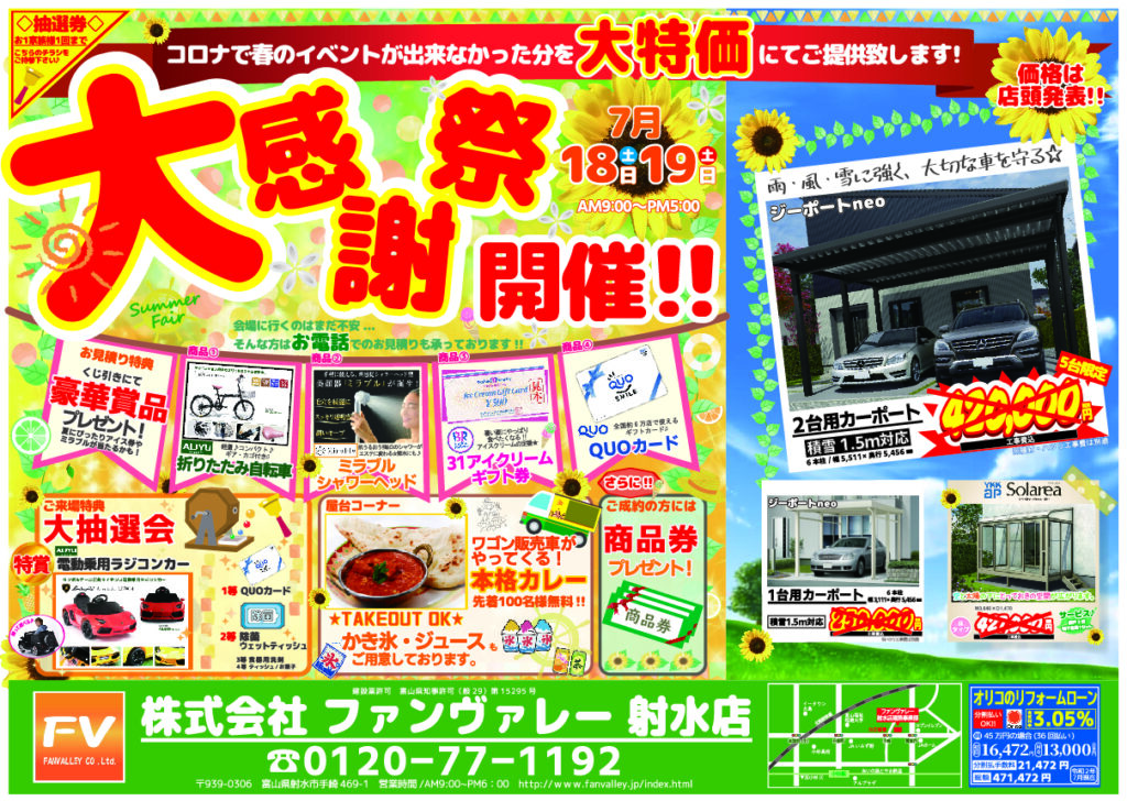 7月18日(土)19日(日)に大感謝祭を開催致します。