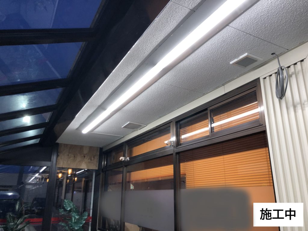 既存の風除室に間仕切りをし、換気扇とエアコンの設置を致しました。