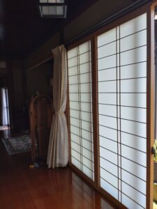 和紙調の内窓を取付けたことでカーテンを閉めなくても目隠しになり