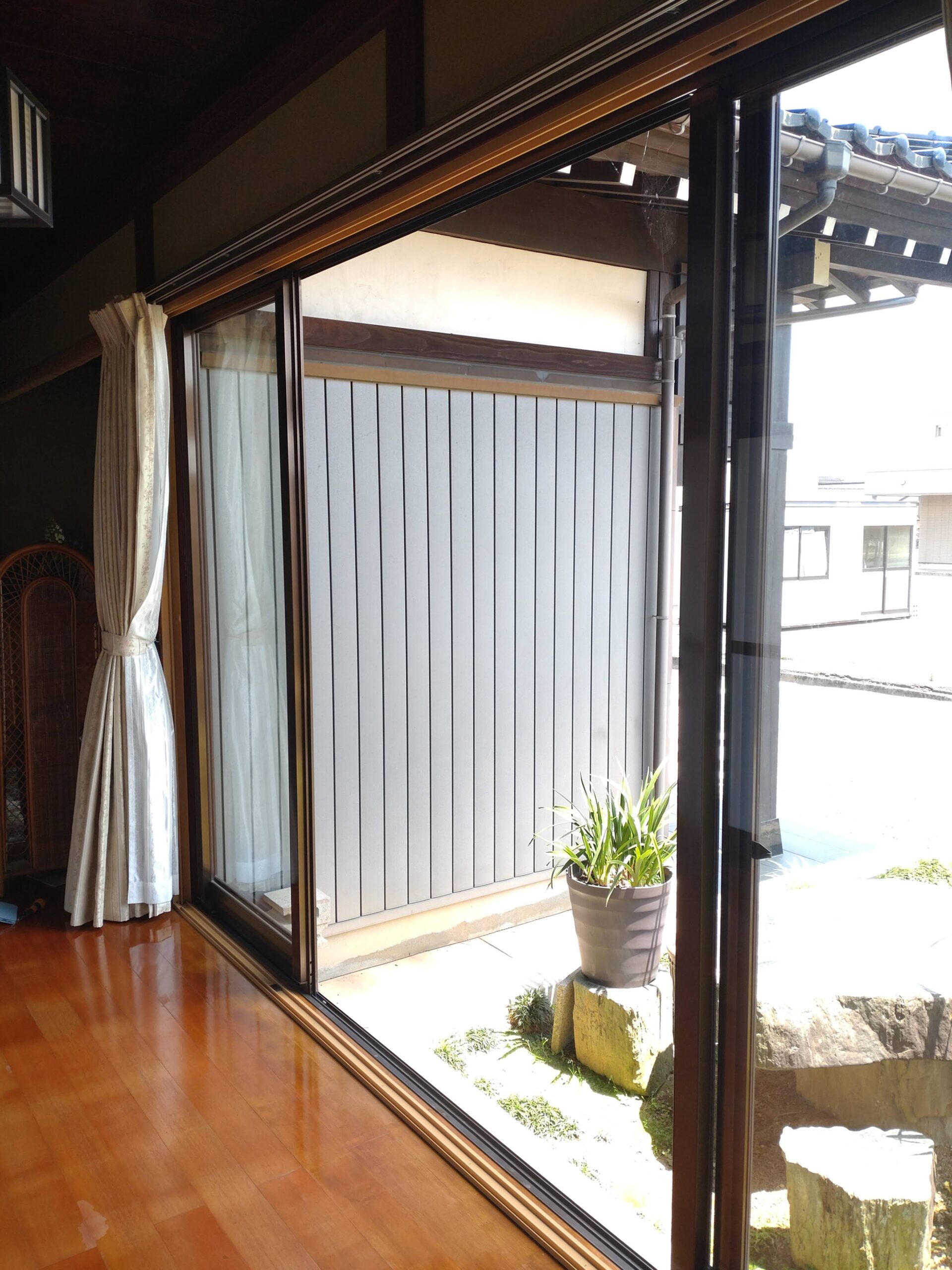 和紙調の内窓を取付けたことでカーテンを閉めなくても目隠しになり